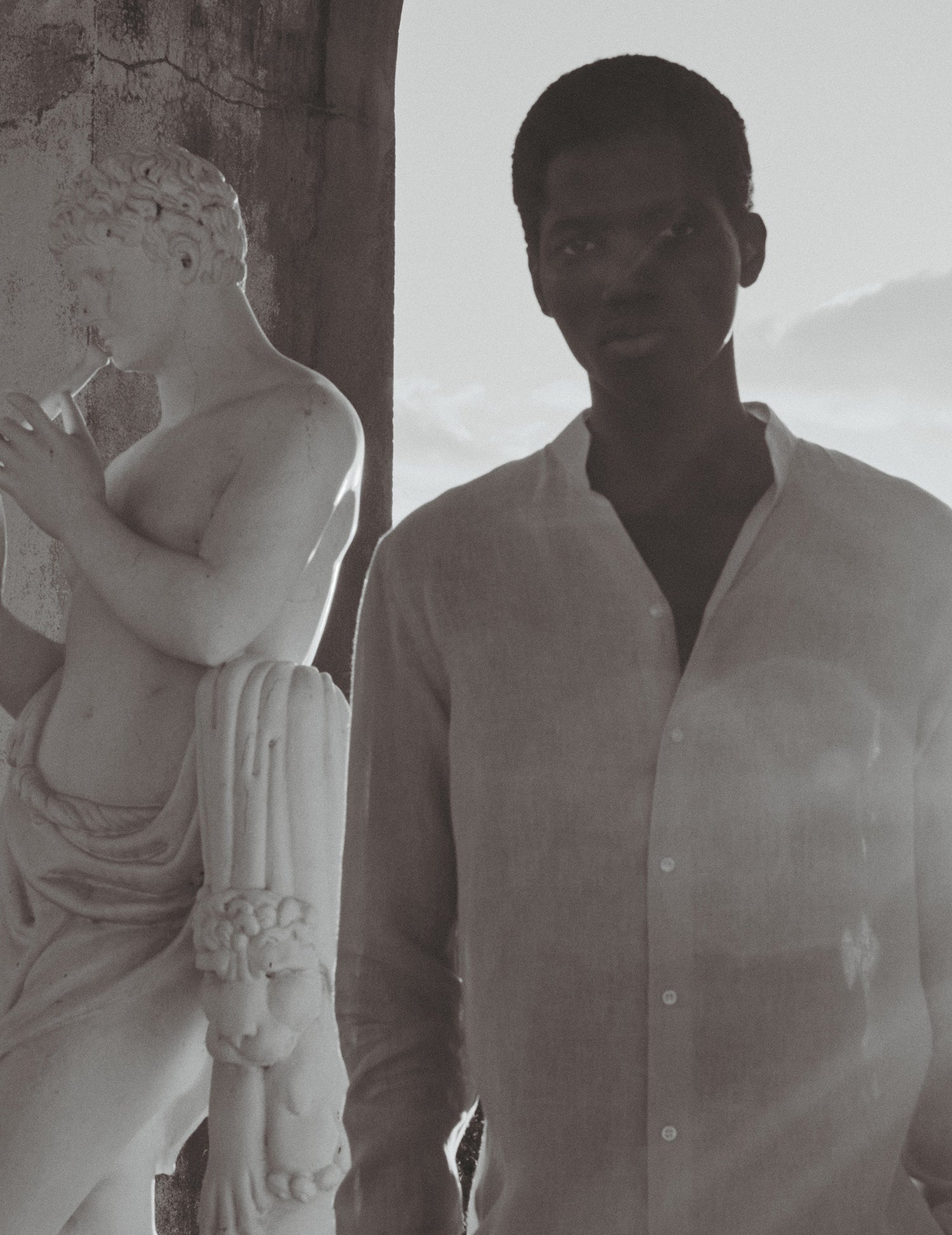 Our signature shirt with an open straight collar, available in various colors and fabrics.