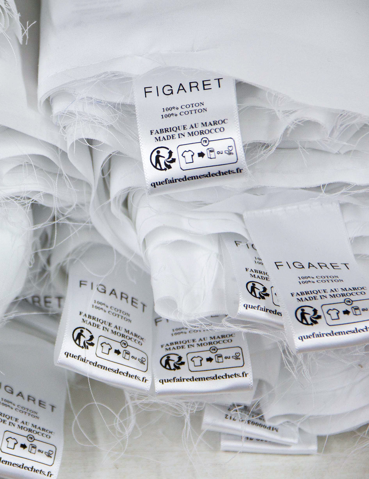 Precisely stitched inside each shirt, the Figaret label signifies its authenticity and commitment to quality. It may be accompanied by markings indicating the type of fabric or thread: "Double twisted," "Japanese fabric," as well as the names of our prestigious partners (Albini, Thomas Mason, Canclini).