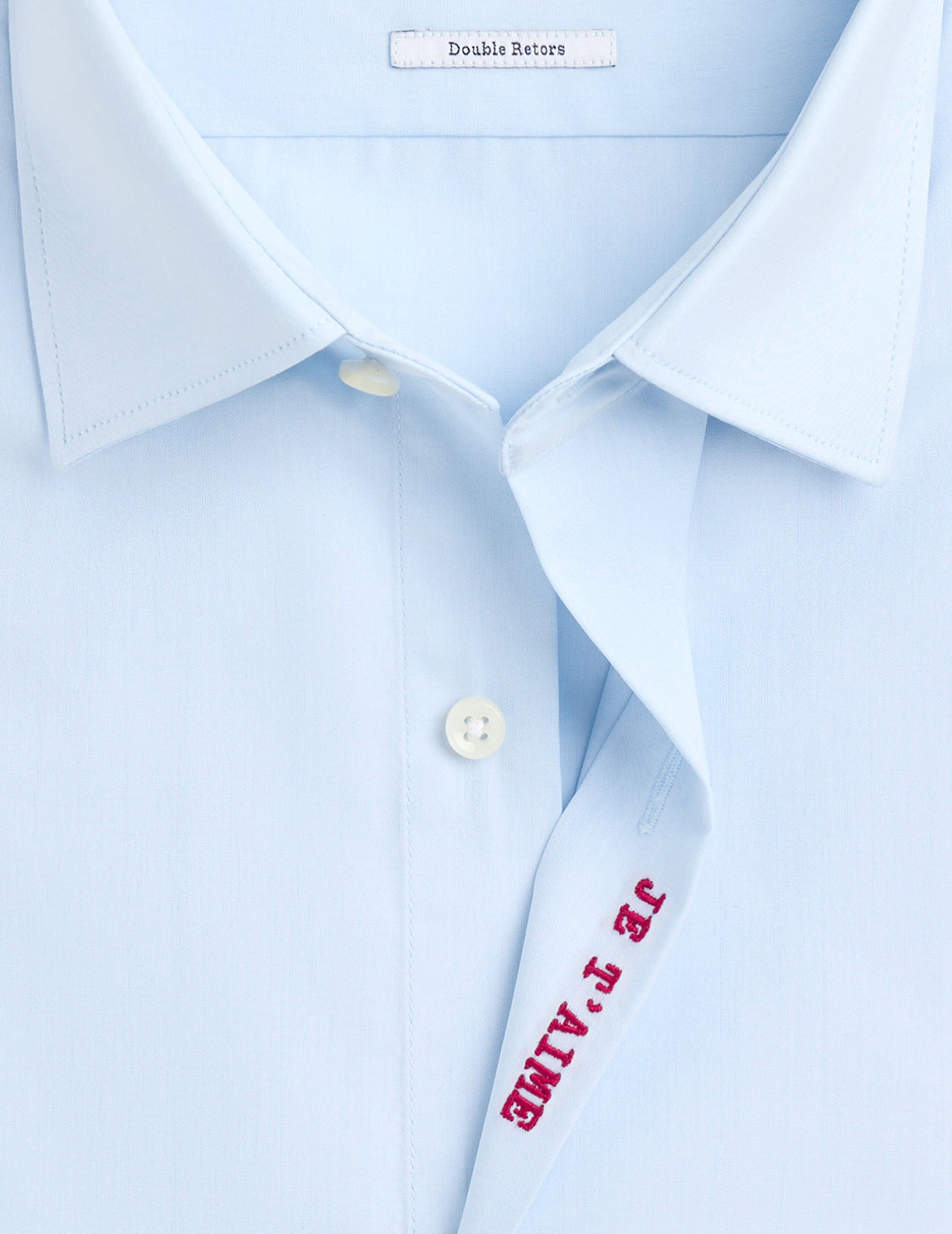 Unisex Blue "Je t'aime" shirt Poplin - Figaret Collar
