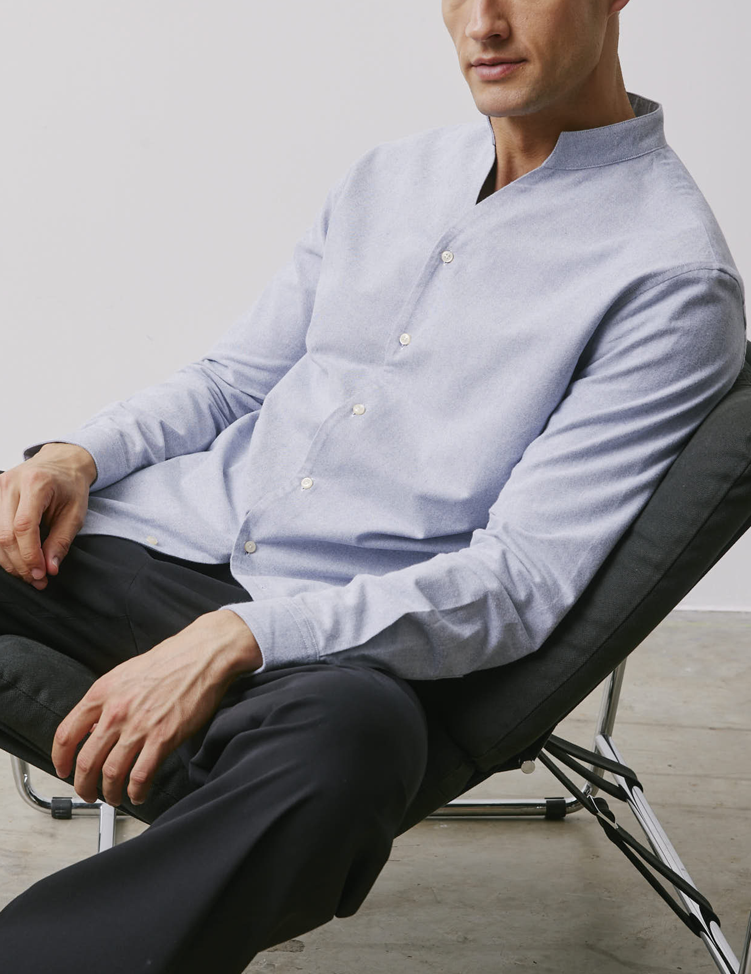 The perfect shirt with an open stand-up collar. A perfect mix between radiance and softness, charisma and attitude.