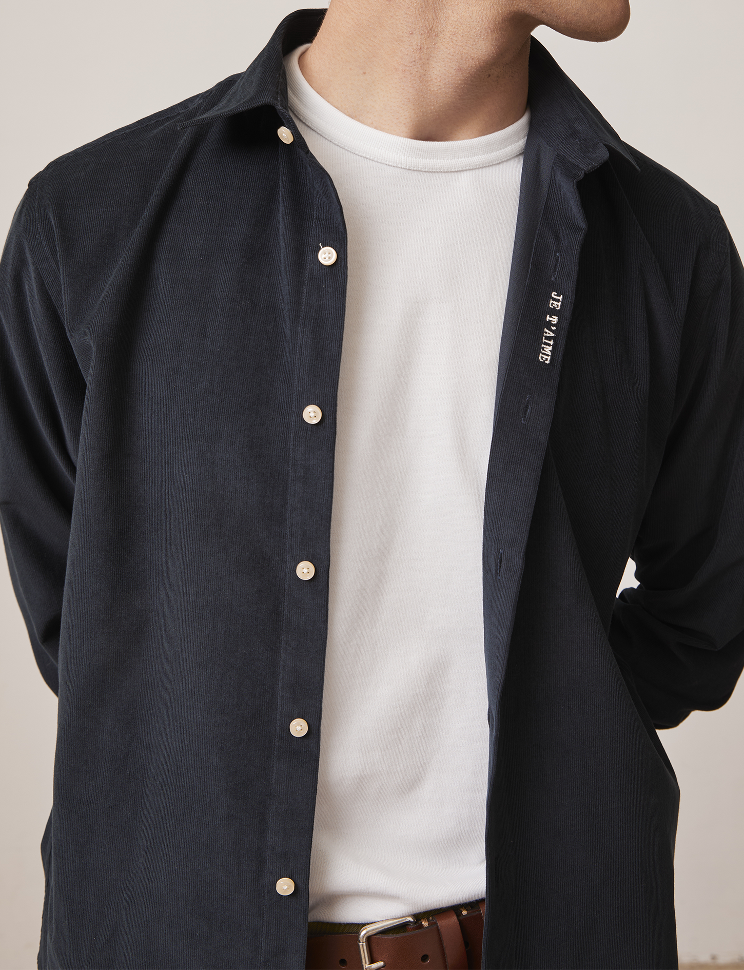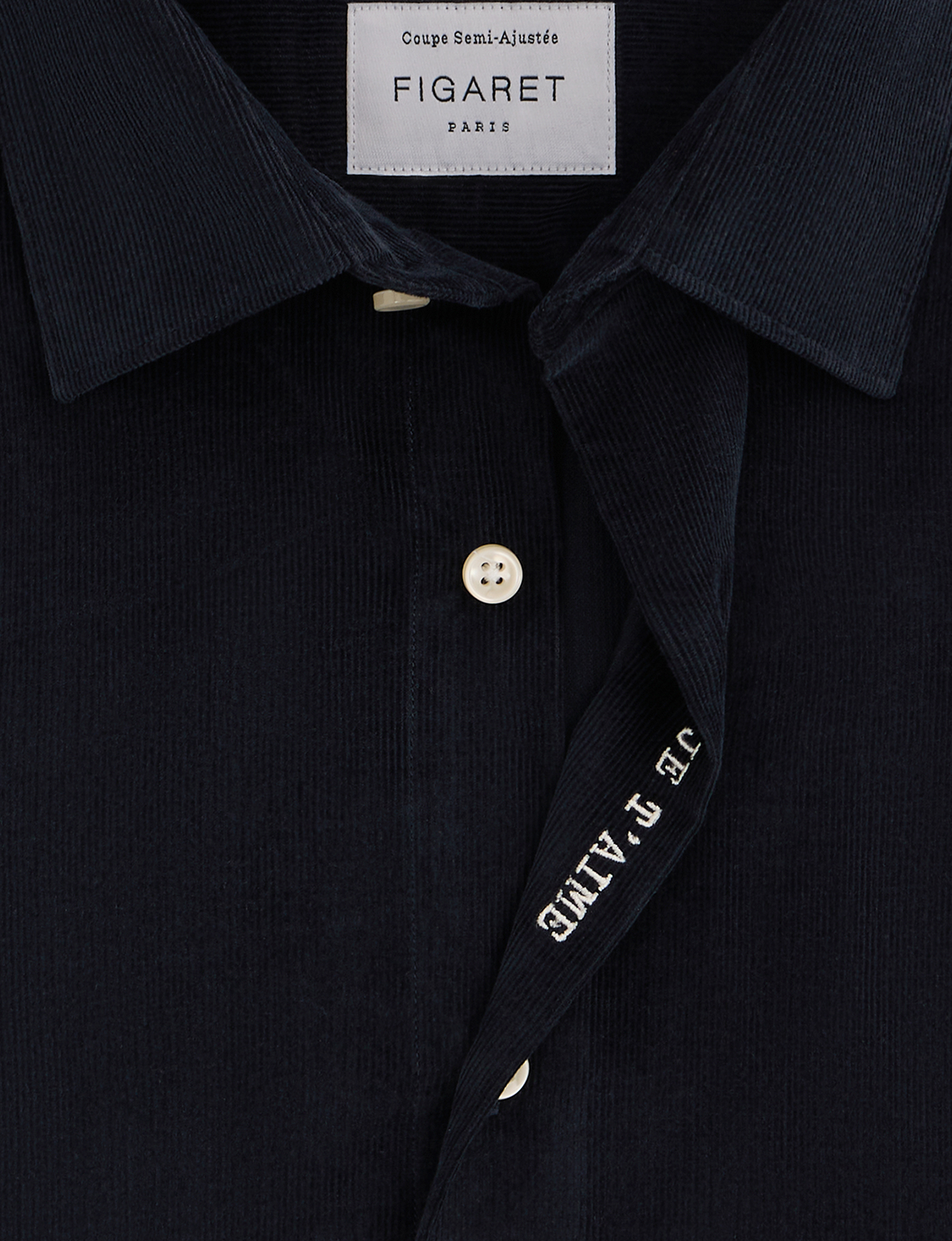 navy blue “Je t'aime” Unisex shirt with white embroidery Velvet - Figaret Collar