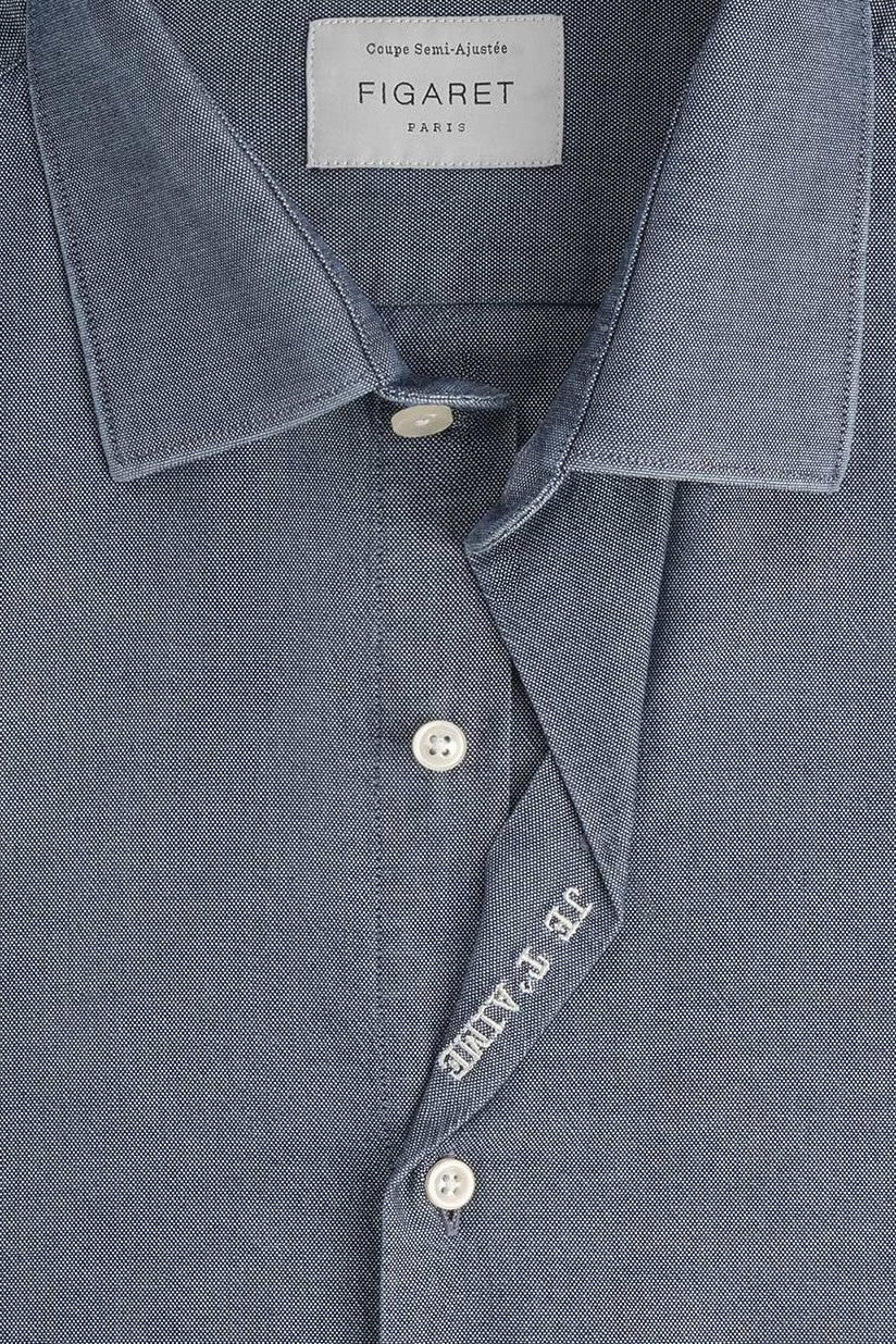 "Je t'aime" brodé sur l'intérieur de la patte de boutonnage. Broderie cachée lorsque la chemise est fermée.