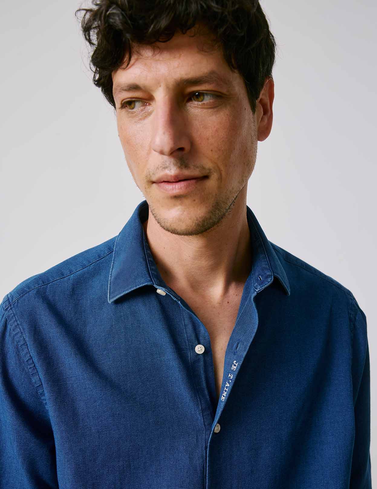 Unisex Denim "Je t'aime" shirt Denim - Figaret Collar