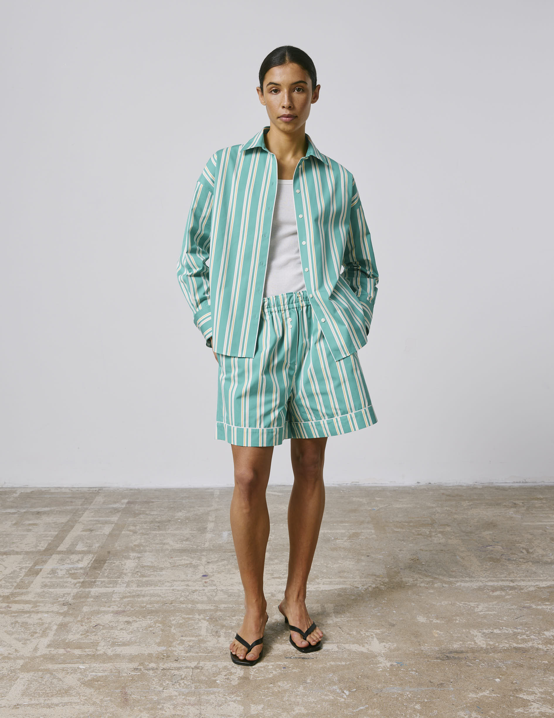 Oversized striped green Lizandra shirt Poplin - Shirt Collar