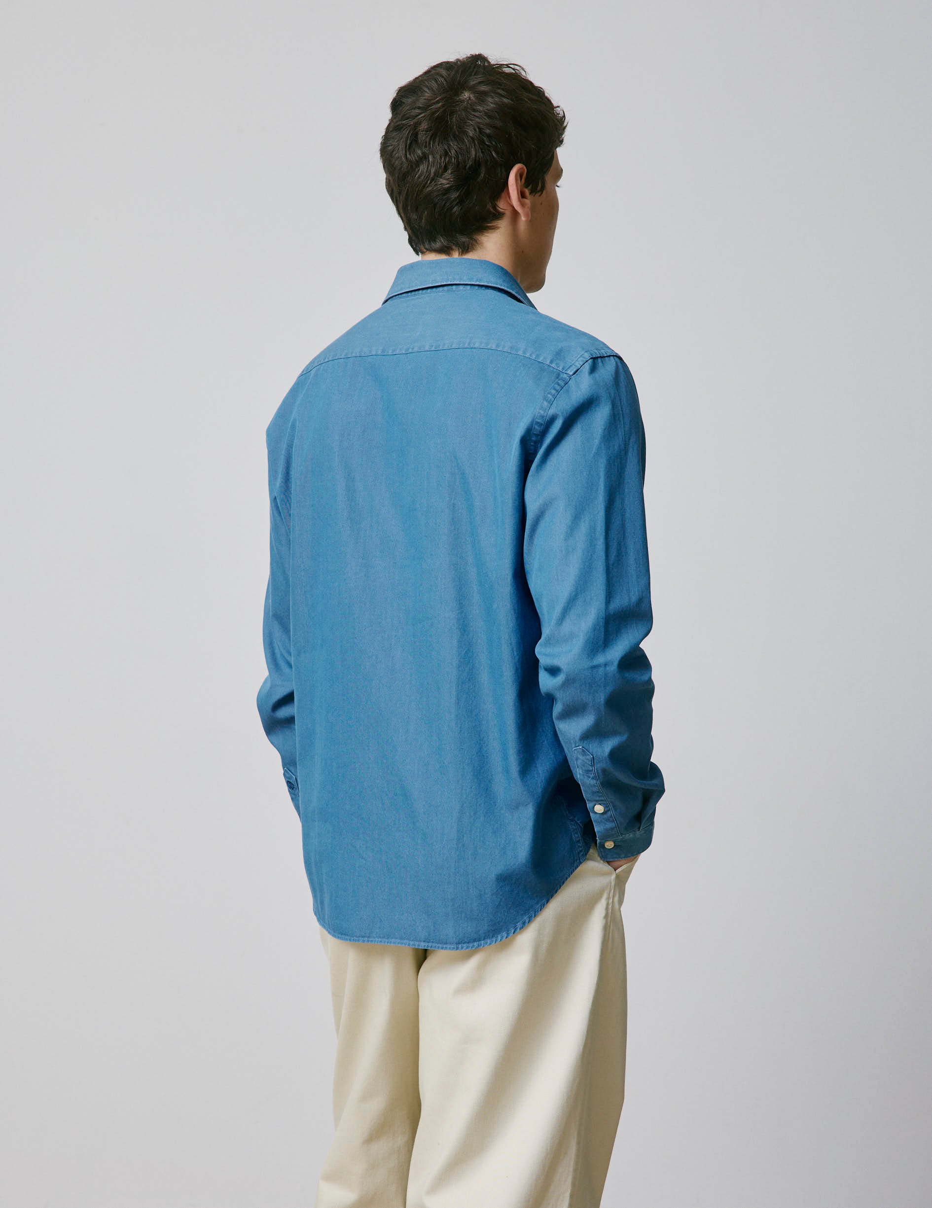 Unisex Blue denim "Je t'aime" shirt Denim - Figaret Collar
