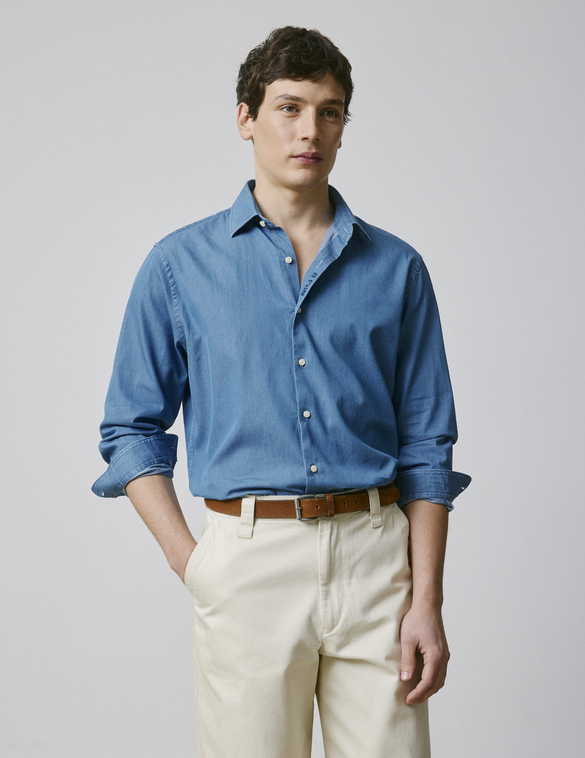 - This shirt is a men’s shirt designed in our semi-fitted cut, tailored to suit all body types. It offers a structured fit while remaining comfortable.