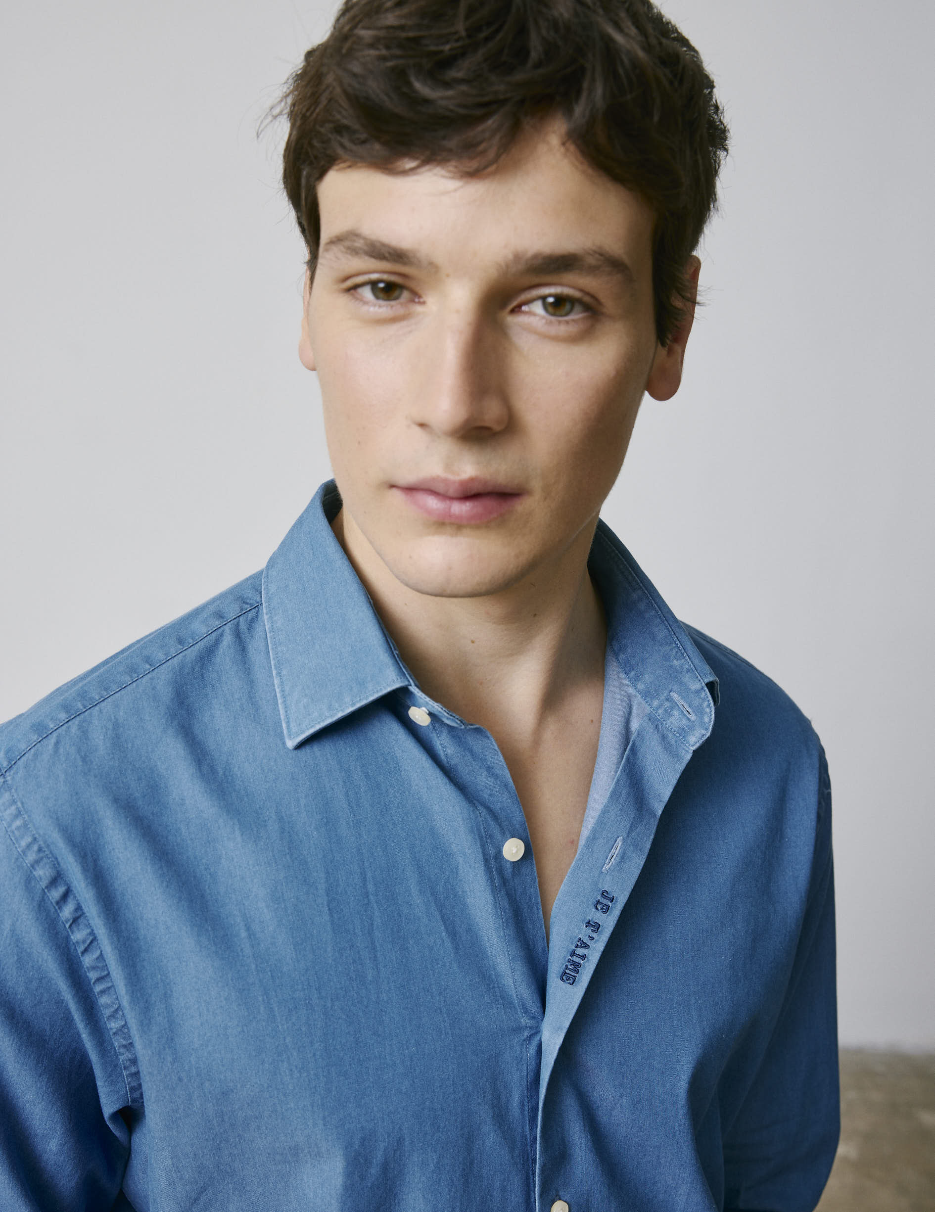 "Je t'aime" shirt freely inspired by Claude Sautet's film "Les Choses de la vie". The mixed shirt: a man's shirt that's never worn as well as by a woman. A message, a declaration of love addressed to the other person or to yourself: "Je t'aime" is subtly embroidered on the reverse of the button placket, not far from the heart.