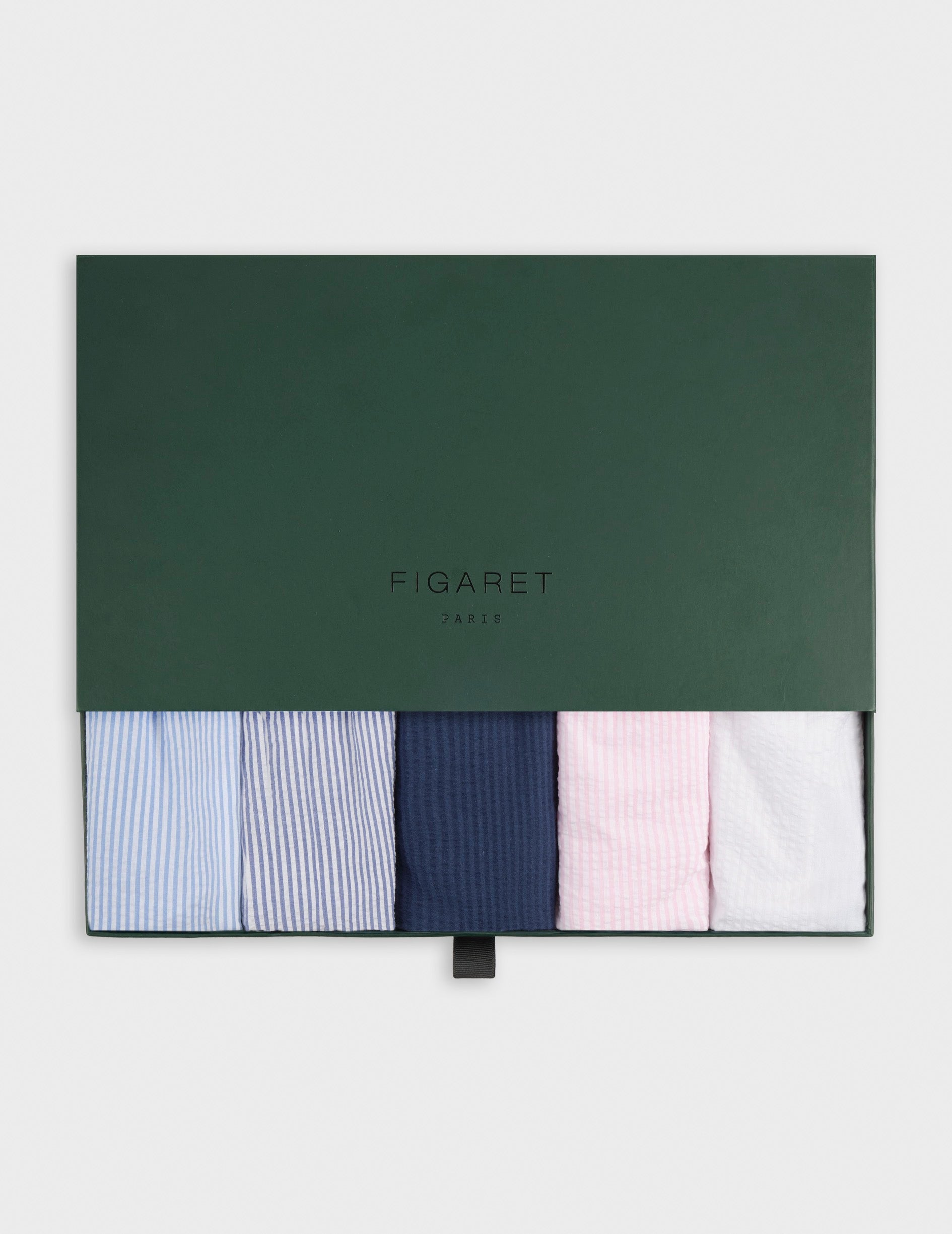 - Weekly set of 5 seersucker underpants : striped navy, tone-on-tone striped navy, striped blue, striped light pink, white