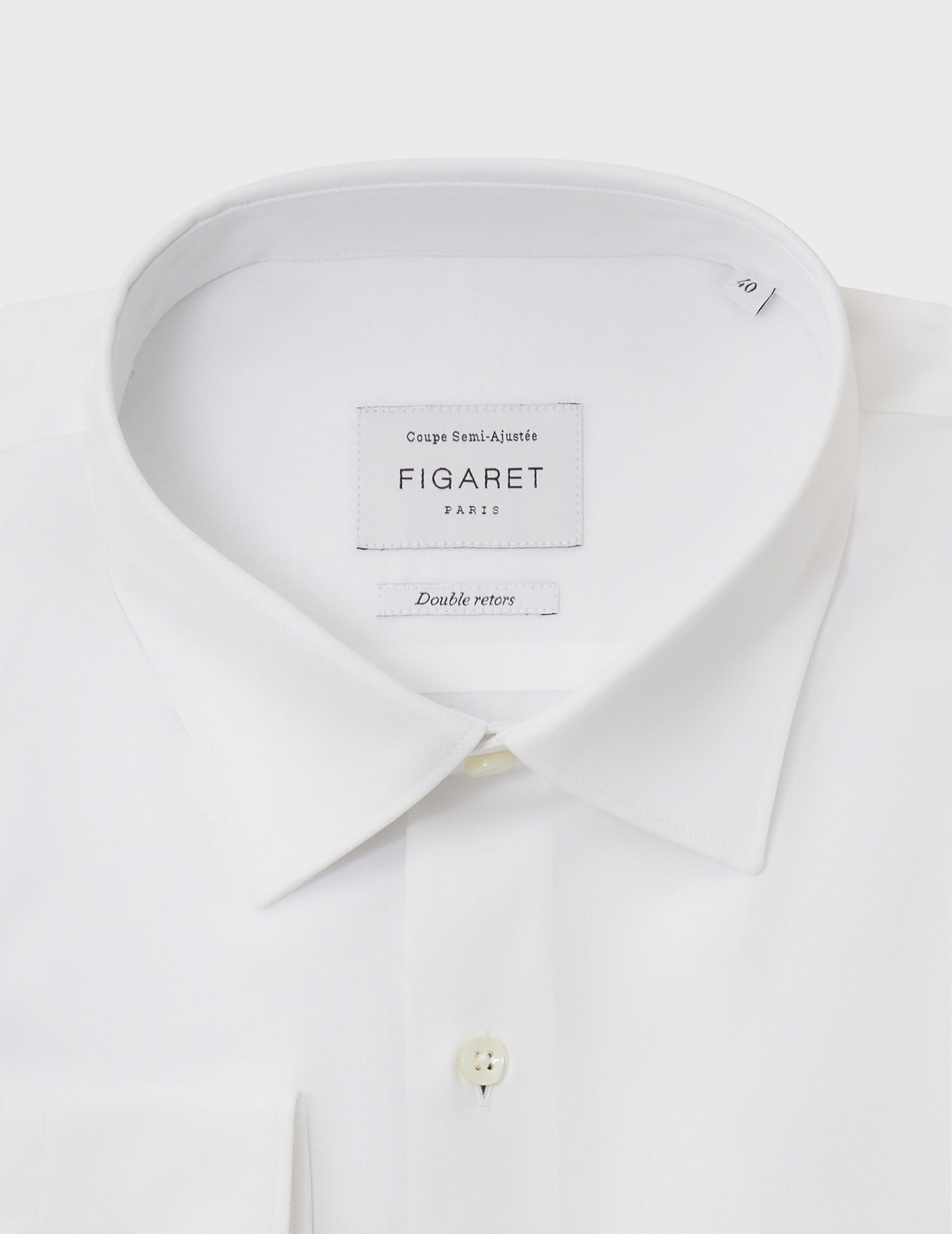 - Figaret collar: signature collar of the house. It is short and flared with integrated collar stays. To wear with everything, of course.