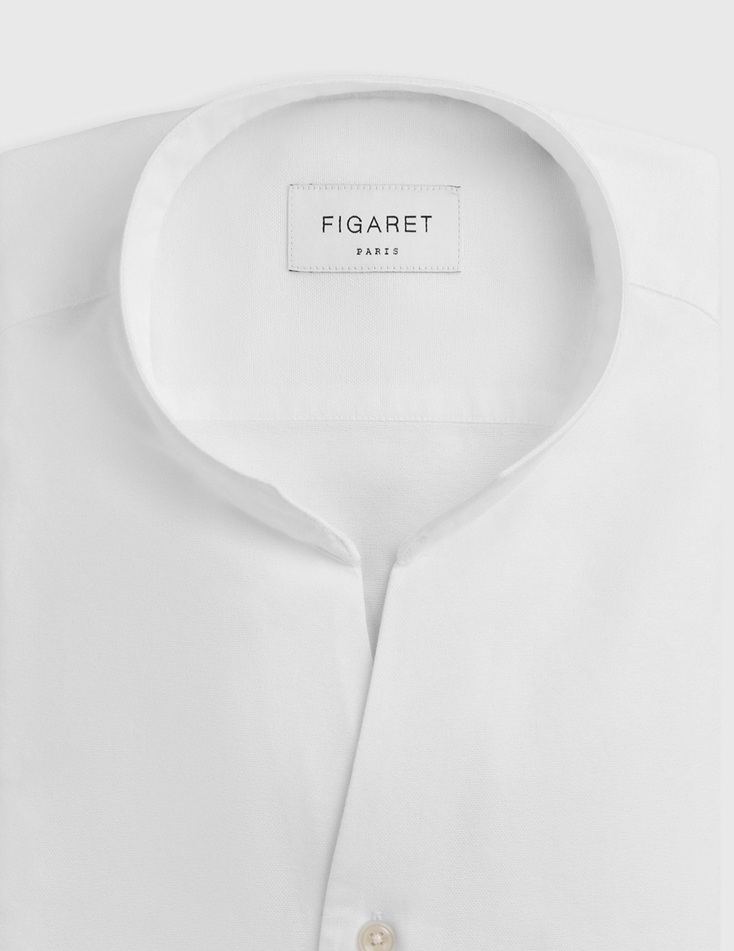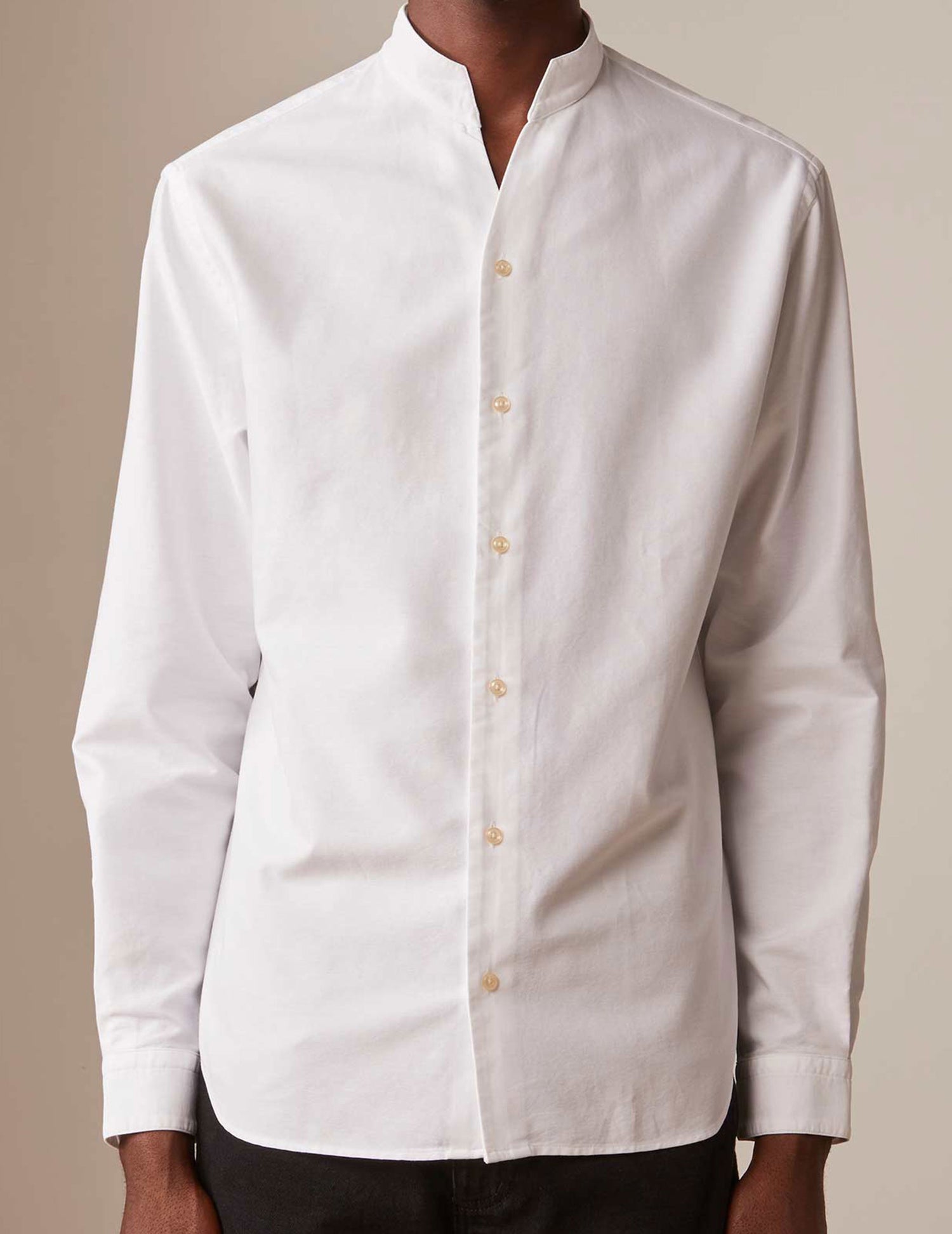 The perfect white oxford shirt with an open straight collar. The perfect mix between radiance and softness, charisma and attitude without artifice.